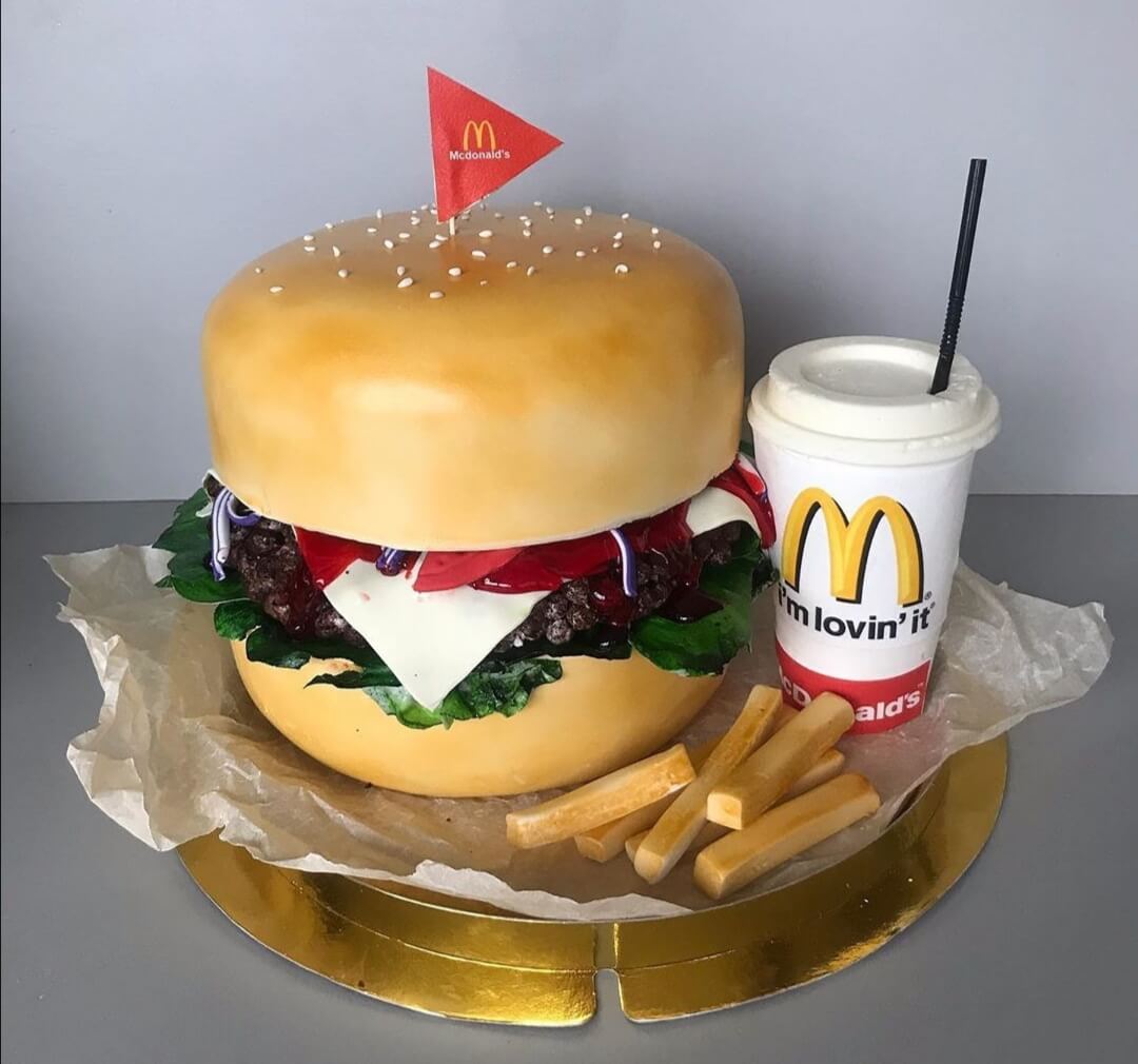 Неординарно оформленный тортик специально для любителей ресторанов быстрого питания