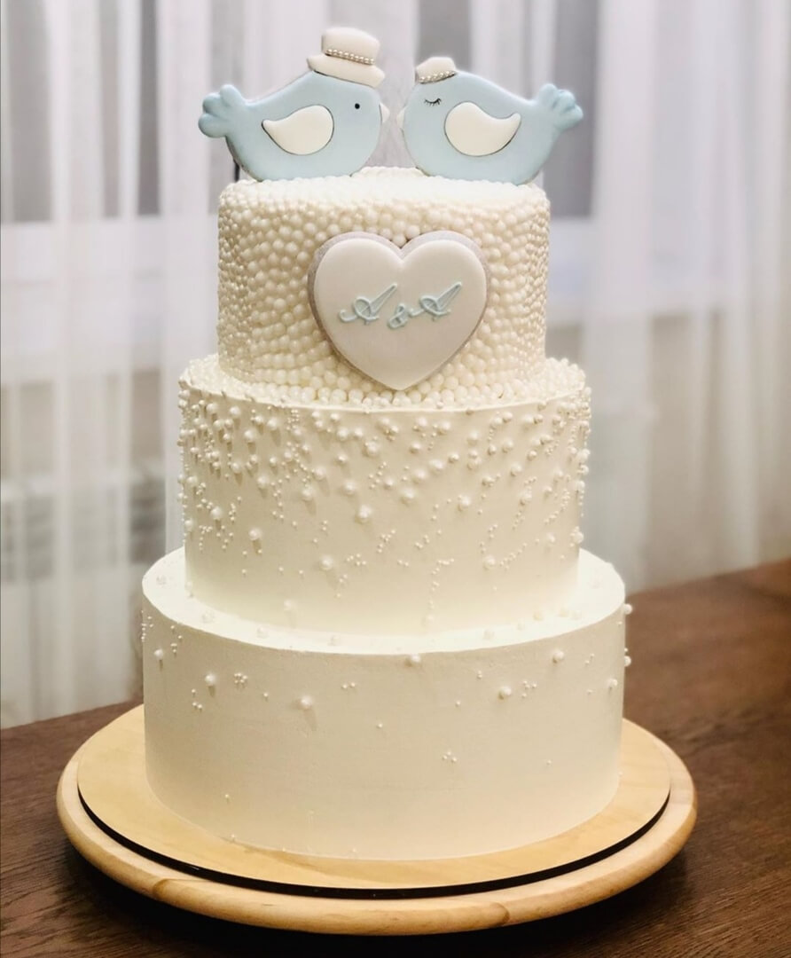 Пернатые символы любви, единства и благополучия отлично впишутся к свадебному тортику
