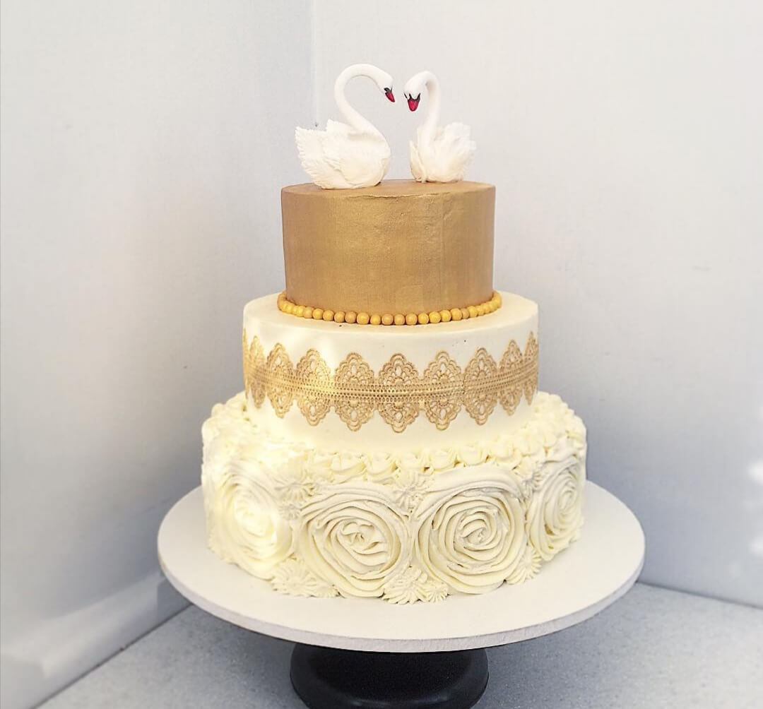 Традиционный свадебный торт с классическим декором